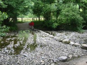 Turn right and go through a gate (NB if you crossed via the bridge you are already past the gate) and follow the well-defined footpath parallel to the river. Cross 2 small footbridges (GR 252151) and continue ahead to a gate (GR 251152) after which the path turns left away from the river.